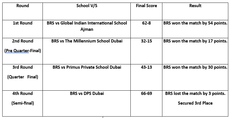 Bright Riders School took part in the CBSE Cluster Basketball Competition (2024-25) which was hosted by DPS DUBAI on 8th and 13th September 2024. The entire tournament was intense as 20 CBSE School teams for U-14 BOYS, 20 CBSE School teams for U-17 BOYS and 20 CBSE School teams for U-17 GIRLS from various corners of the UAE battled for the 1st place to qualify for the CBSE Basketball National event.